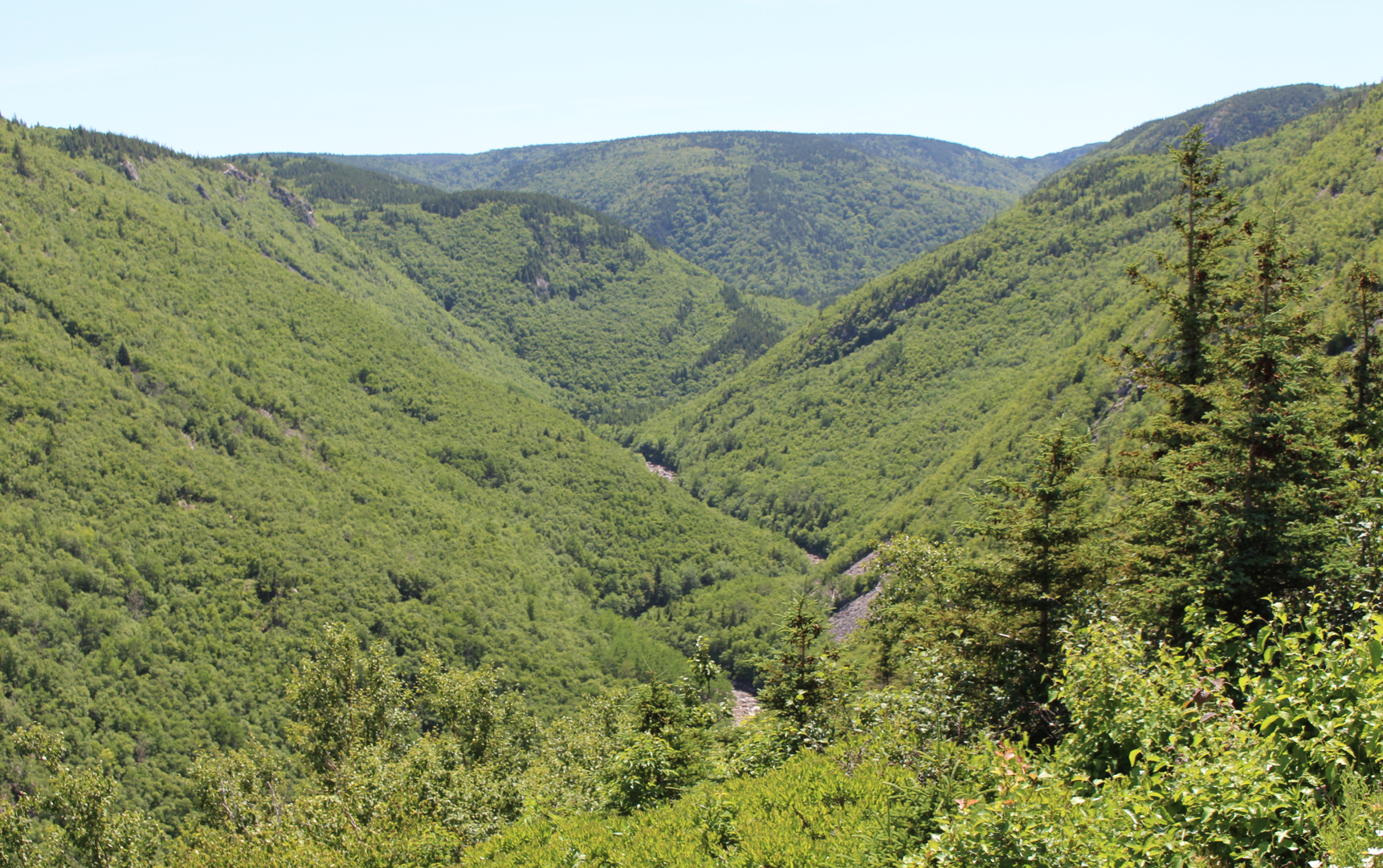 The Cabot Trail was my highlight of the trip. Amazing scenery filled with great views of the ocean and bays and little inlets. There were rough shorelines framed with shale-coloured rocks and thick trees everywhere. The highway is good but the road winds up and down valleys and around hills, so getting from Sydney, NS to the end of the Cabot Trail (if you drive it counter clockwise) takes a full day. It’s a terrific drive and the highway wasn’t that busy. It’s a shame more people, especially Canadians don’t take this drive. For my money it’s almost as good as Highway 93 from Banff to Jasper, Alberta.