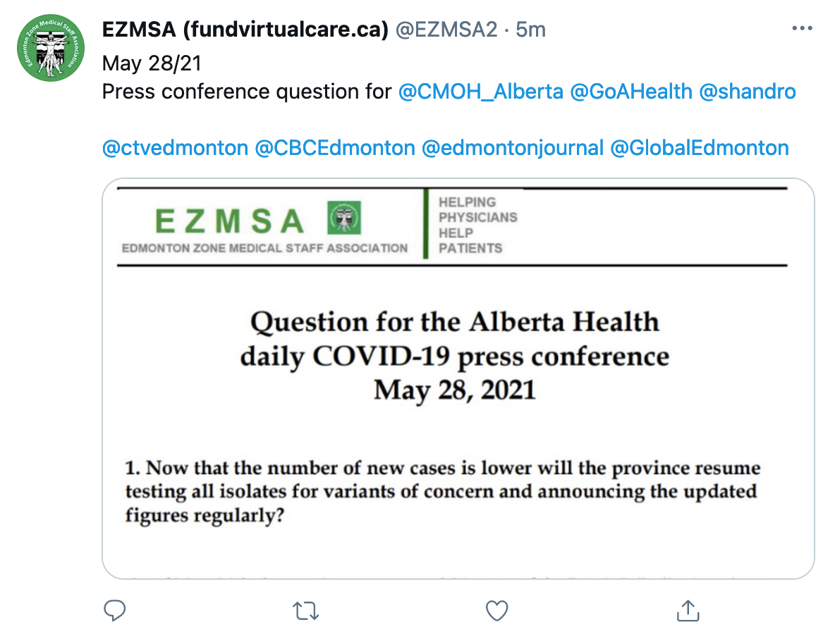 The answer is pretty simple. People in Alberta aren’t happy with the way they’re being spoon-fed information from people like Premier Kenney and Dr. Deena Hinshaw. They’ve seen their act for months and have seen them dodge questions and not give real answers. People have real questions they want answered. The best way of doing that is sending them to reporters.