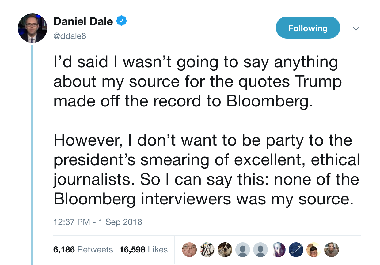 As soon as the Star’s story was released, Trump sent Tweets criticizing Bloomberg for leaking the story and then Dale defended Bloomberg, without saying how he got the information.