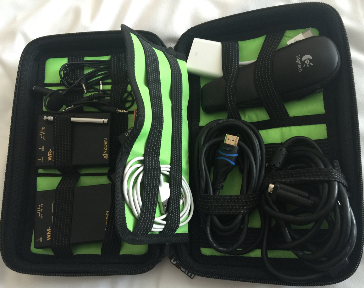 One final thought – some advance planning and practice can avoid all of these potential landmines. I have a case that I keep my cords, adapters, batteries and other stuff in. If I have that case (pictured right), then I know I’m good to go for most of my speaking events. You likely won’t need as much gadgetry as this, but you will need a wireless remote, an adapter, an HDMI cable and some fresh batteries. You may as well keep them together.